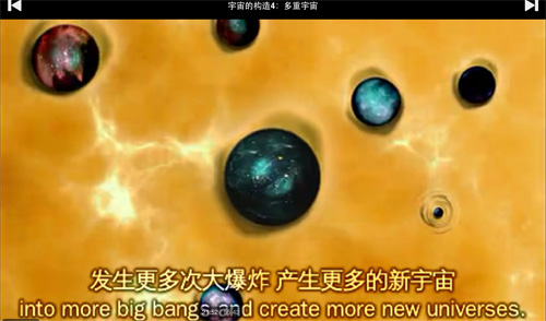有无数的这类泡泡存在,如果你想这么称呼的话,正在从多样的可能性与概率来探索物质世界。记住,我们说过,意识是(consciousness IS)。意识是这个粒子宇宙里所有可能性与概率的源头。(流火2014-01-21:借助《宇宙的构造4》里面的截图,也许可以帮助大家更好理解【宇宙泡泡】的概念。)