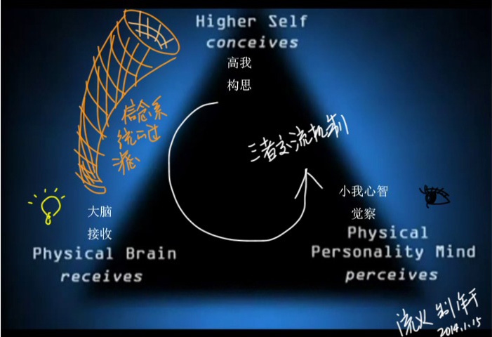 说到这儿想起,许多灵修的朋友似乎有一个倾向,就是比较排斥思维与逻辑,似乎它们是灵修路上的绊脚石,只醉心于空无、或与大我的融合。殊不知,严密的逻辑,正是小我运作的机制,不了解这些内在的机制,就无法了解自己。而不了解自己,与大我的融合也就沦为空谈。 就这两天,在无意中看了巴夏的视频资料后,又再一次欣喜地发现,这些资料不但验证了我过去的体验,又在一些细微之处启发和修正了我正需要的定义。正象一个探宝游戏,不但给予了我想要的奖励,又继续给了我前进的线索。这个游戏确实是越来越好玩儿了。有兴趣的朋友,强烈在此推荐:http://www.tudou.com/listplay/P3sS3tkFQ3A/Sy39xQ8qIDk.html。如果想下载的话,也已有朋友好心上传(有2个G,算比较大):http://pan.baidu.com/s/1i3DQJMd 补充一下巴夏对于大我、大脑与小我心智三者之间的运作机制。这是更为清晰的说明。在以后的实践中,不但将加深与验证对这个机制的理解,并且将有助于我们与大我的信息交流越来越流畅。本图也可以结合Datre资料中思考与灵感一文来理解。